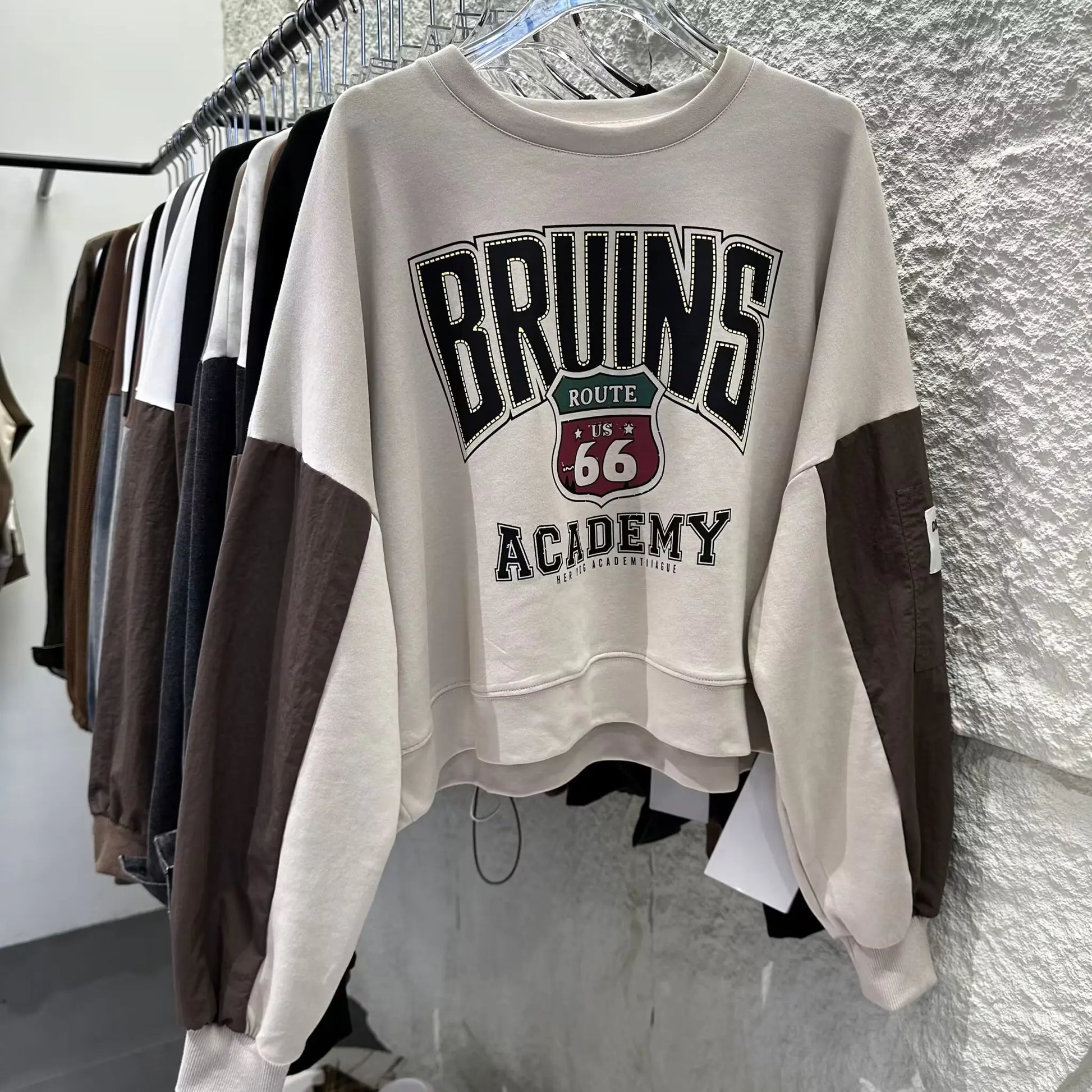 Letter Printed Loose Patchwork Long Sleeve Pullover